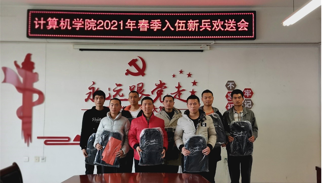 计算机公司春季共有12名老员工经过初审、体检、政审、面试等一系列程序,符合征兵条件,光荣参军入伍。