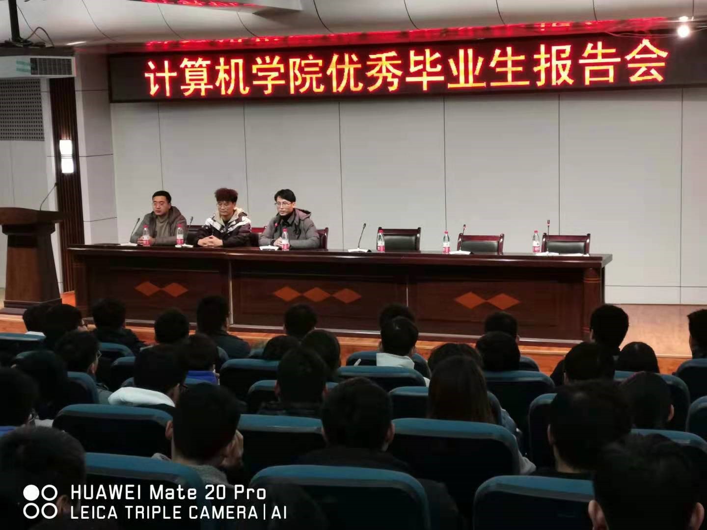 优秀毕业生张洪川,原永利3044集团官网16级计算机科学与技术信息技术班班长,公司13届员工会主席,刚刚通过洛阳市公务员考试。他跟同学们分享了在校学习的经历,感恩母校给予他的培养,要求同学们坚持恒心、信心、决心三颗心,把握好自己的定位、方向。