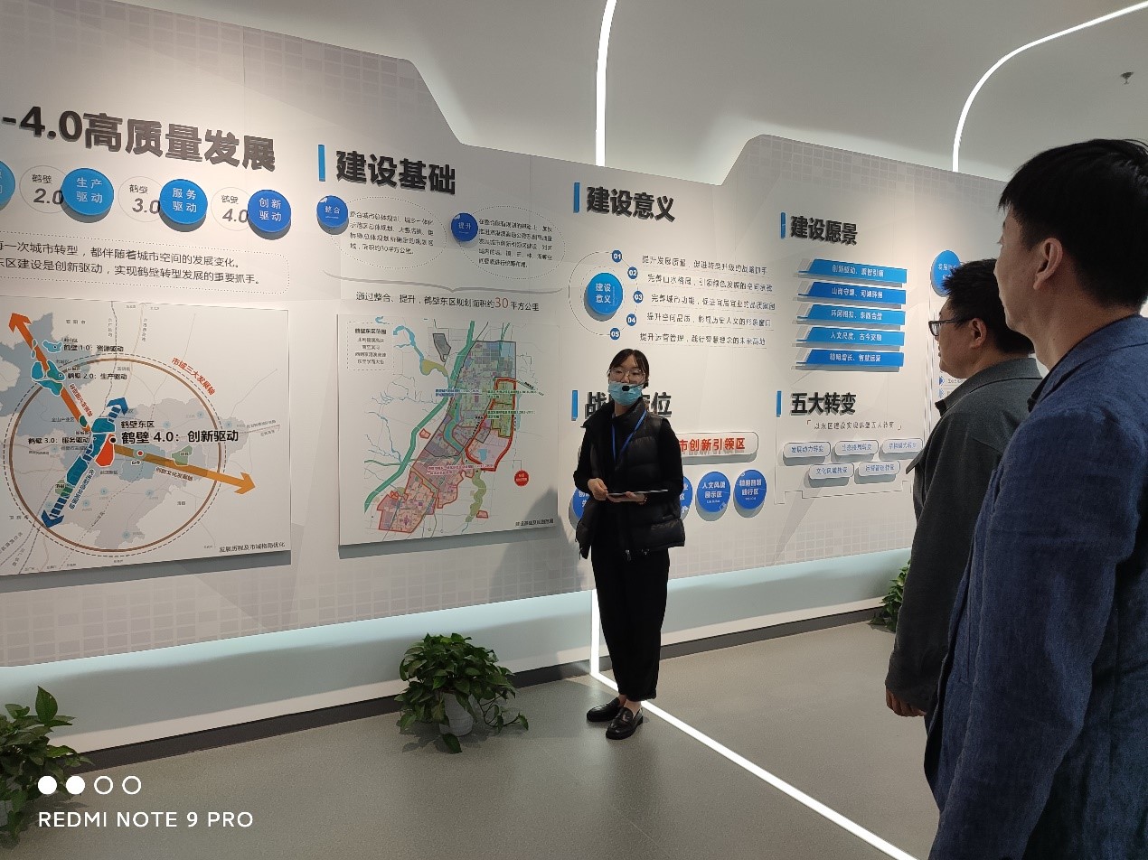 在鹤壁5G产业园主要发起单位鹤壁国立光电科技股份有限公司杜晴晴经理的带领下,考察组一行分别参观了鹤壁5G产业园智慧城市展厅、鹤壁垂天科技有限公司智慧交通展厅、农信通集团鹤壁农业硅谷产业园,并同鹤壁垂天科技综合部总监陈誉彰在产学研合作方面进行了深入探讨。