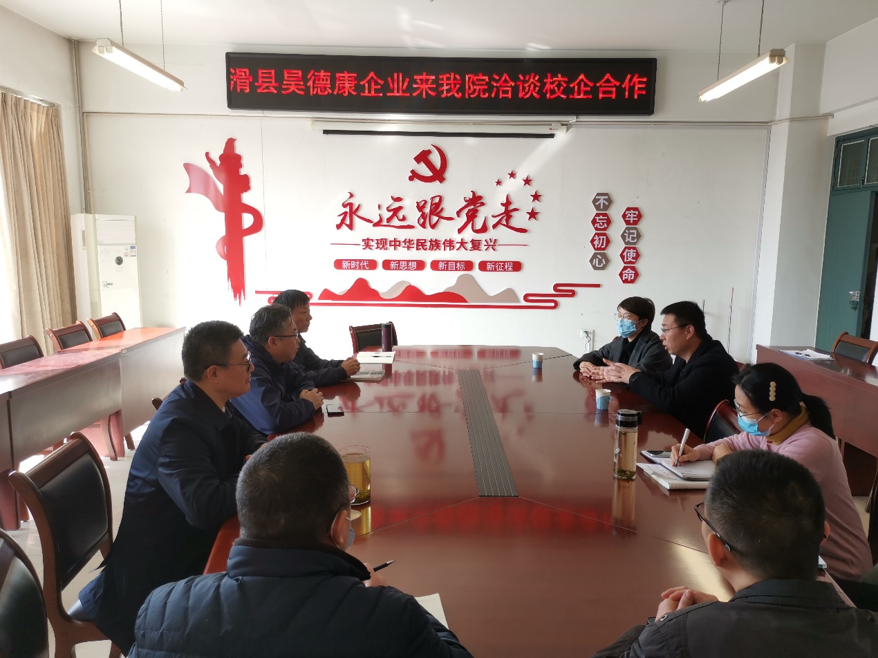 2022年3月1日,河南省昊德康医疗器械有限责任公司应邀到公司洽谈校企合作事宜。昊德康企业董事长对企业做了全面的介绍,并欢迎公司的技术力量参与产品的研发。计算机公司经理孙高飞及领导班子成员对永利3044集团官网的传统优势做了详细介绍。双方对在康复医疗器械方面的合作开发充满信心,并对初步的合作方式达成了一致意见。