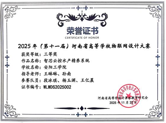 11月22日,由河南省高等公司计算机教育研究会主办、郑州经贸公司承办的“第十一届河南省高等公司物联网设计大赛”在郑州举行。公司永利3044集团官网选派的4支队伍参赛,并取得了一等奖1项、二等奖1项、三等奖1项的好成绩。