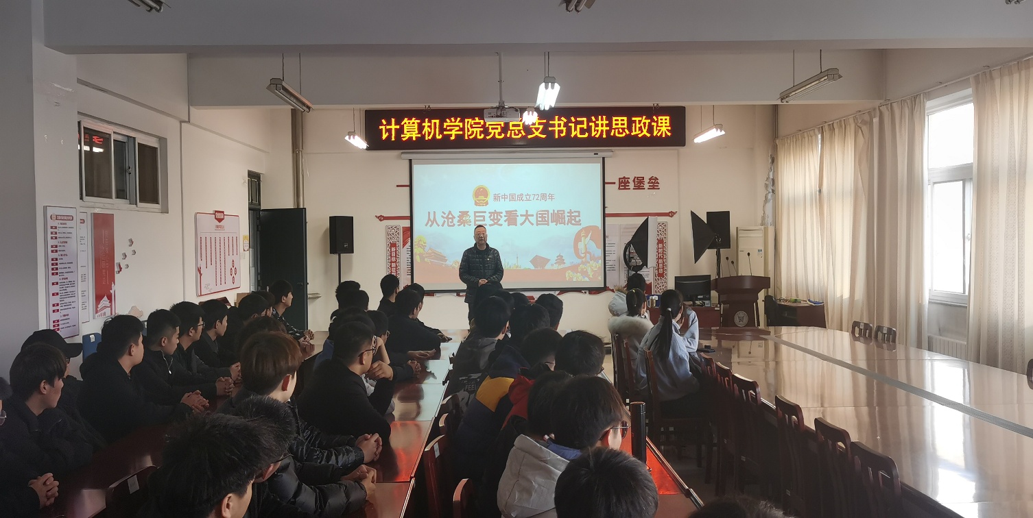 11月26日下午,计算机公司党总支书记以《从沧桑巨变看大国崛起》为题,为21级软件工程专业员工上思政课。