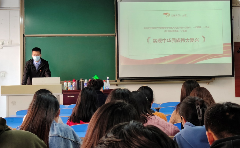 10月28日下午,第三员工党支部书记、辅导员牛培全在A-06 206以《实现中华民族伟大复兴》为题,为19级、20级部分员工做主题宣讲。围绕“以史为鉴、开创未来,实现中华民族伟大复兴的中国梦”这一主题,阐释了“七一”重要讲话精神的重大意义和主要内容,并就如何深入学习贯彻作了讲解。