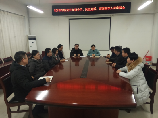 12月25日下午,计算机科学与信息工程公司党总支在A-06 309会议室召开党外知识分子、民主党派、归国留学人员座谈会。公司党总支书记路春霞,副经理、党总支统战委员孙高飞参加了座谈会。座谈会由路春霞主持。